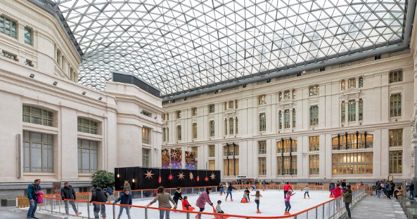 Während der Feiertage erscheinen verschiedene Eisbahnen in der ganzen Stadt und verleihen Madrid einen besonderen winterlichen Charme. Eine der bekanntesten ist die Bahn am Palacio de Cibeles, direkt vor dem majestätischen Rathaus. Ob elegant auf Kufen oder sich an den Geländern festhaltend – es macht einfach Spaß. Danach ist heiße Schokolade fast obligatorisch.